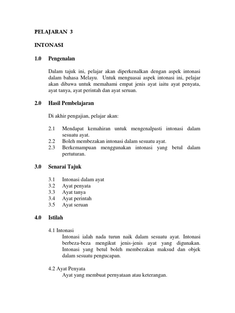 Share BUKU TEKS BAHASA MELAYU TAHUN 1 everywhere for free. Negeri Istilah perkataan Bahasa melayu baku Kelantan Teghtek teghning Oghe Sopan santun orang Jadual 4. Intonasi ialah keadaan bunyi yang menaik atau menurun sewaktu sesuatu ayat itu dilafazkan.